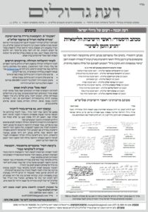 עלון דעת גדולים מס' 17, פסקים ועובדות מגדולי ישראל ביסודות הבית היהודי גליונות נוספים של דעת גדולים לחץ כאן