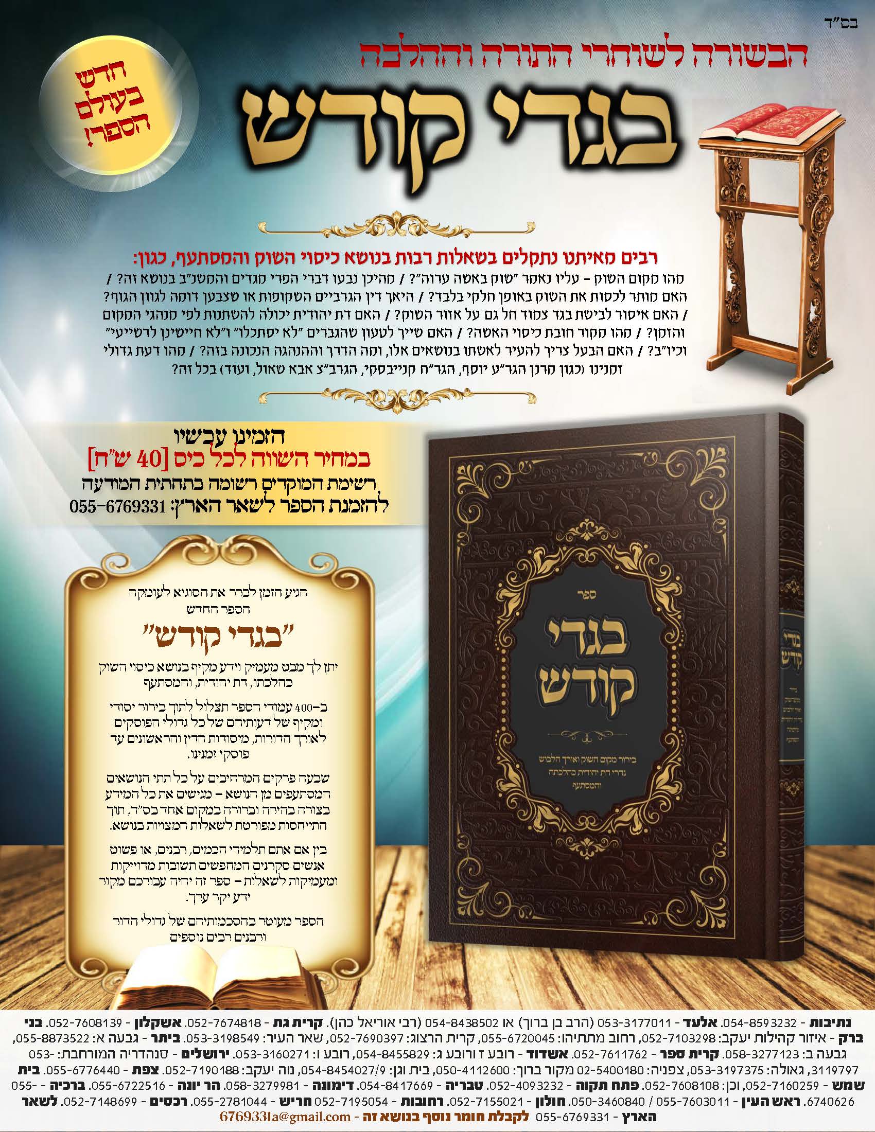 גליון דעת גדולים 18 פרשת מקץ ויגש – פסקים ועובדות מגדולי ישראל ביסודות הבית היהודי