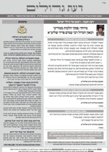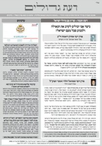 - גליון דעת גדולים 29 פרשת נשא-בהעלותך תשפה – פסקים ועובדות מגדולי ישראל ביסודות הבית היהודי