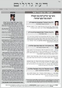 - גליון דעת גדולים 34 פרשת פנחס תשפה – פסקים ועובדות מגדולי ישראל ביסודות הבית היהודי