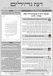- גליון דעת גדולים 29 פרשת נשא-בהעלותך תשפה – פסקים ועובדות מגדולי ישראל ביסודות הבית היהודי