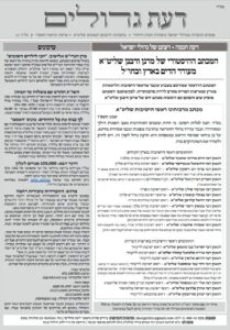 - גליון דעת גדולים 36 פרשת דברים תשפה – פסקים ועובדות מגדולי ישראל ביסודות הבית היהודי